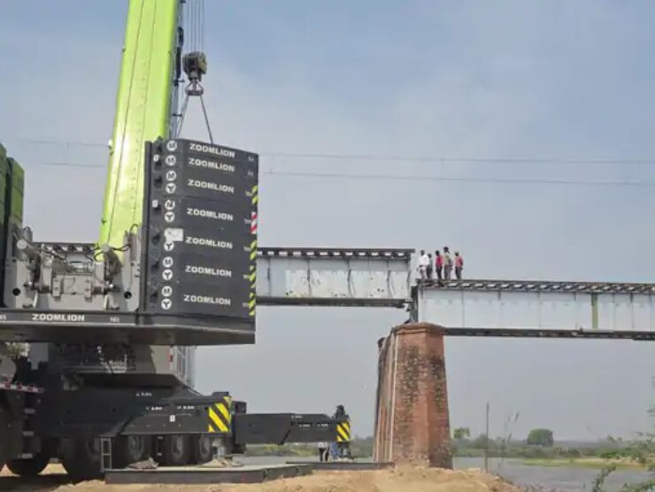 500 टन की महाकाय क्रेनों से हुआ गर्डर का सफल स्थापन