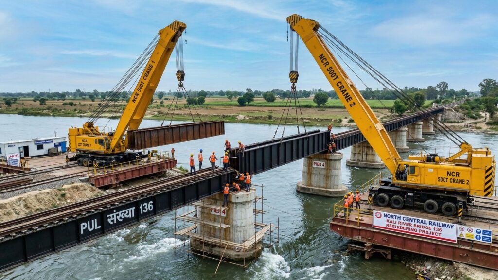 - हैवी मशीनरी: गर्डर बदलने के लिए 500 टन क्षमता की दो शक्तिशाली क्रेनों का सफल संचालन।