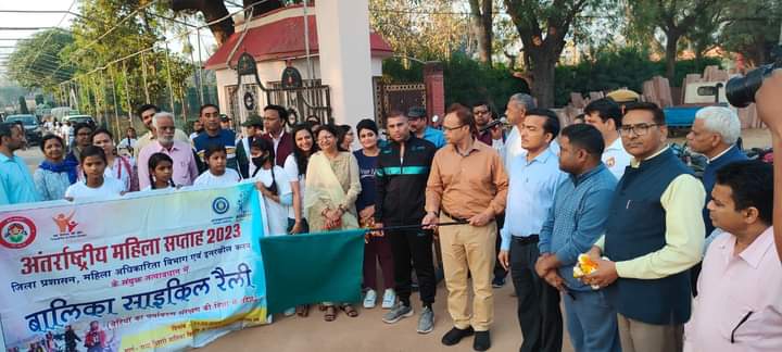 धौलपुर। अंतर्राष्ट्रीय महिला सप्ताह के तहत जिला प्रशासन एवं महिला अधिकारिता विभाग के संयुक्त तत्वावधान में बालिका साइकिल रैली निकाली गई। रैली को जिला कलक्टर अनिल कुमार अग्रवाल ने भार्गव वाटिका से हरी झंडी दिखाकर कर रवाना किया। जिला कलक्टर अग्रवाल ने इस अवसर पर संबोधित करते हुए कहा कि रैली निकालने का उद्देश्य बालिका सशक्तिकरण एवं पर्यावरण संरक्षण का सन्देश देना है।इस दौरान अतिरिक्त जिला कलक्टर सुदर्शन सिंह तोमर व उपखंड अधिकारी अनूप सिंह ने भी रैली को संबोधित करते हुए सड़क पर साईकिल चलाते समय सड़क नियमों की पालना व पर्यावरण संरक्षण व महिला सुरक्षा व सबलीकरण की बात कही।