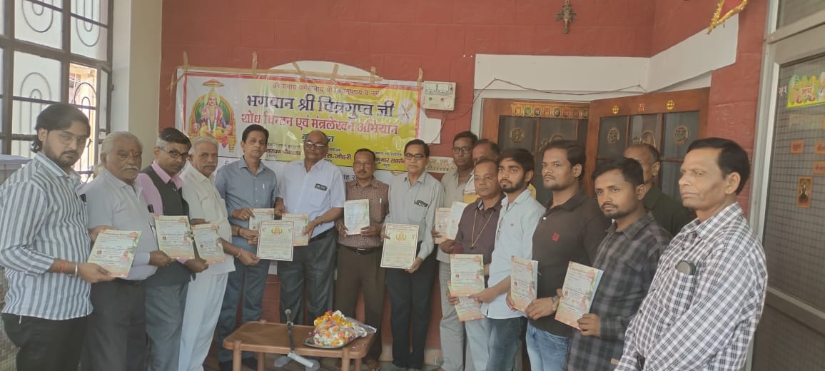धौलपुर। चित्रगुप्त पीठ वृंदावन द्वारा भगवान श्री चित्रगुप्त शोध चिंतन एवं मन्त्रलेखन अभियान धौलपुर की वैठक रविवार को चित्रगुप्त समिति अध्यक्ष एडवोकेट सुरेश चन्द्र श्रीवास्तव की अध्यक्षता मधुवन कॉलोनी पर आयोजित की गई।वैठक में मुख्य अतिथि बृज प्रांत के संयोजक एस.एस.जौहरी ने भगवान श्री चित्रगुप्त शोध चिंतन एवं मन्त्रलेखन अभियान के जिला संयोजक पद समाजसेवी नीरज हजेला एवम् जिला सह संयोजक पद पर विजय श्रीवास्तव को नियक्ति पत्र देते हुए घोषणा की । मुख़्य अथिति जोहारी ने कहा कि पशुपतिनाथ अखाड़ा महामंडलेश्वर स्वामी सच्चिदानंद के सानिध्य में श्री चित्रगुप्त पीठ वृन्दावन में स्थापित होने जा रहा है श्री चित्रगुप्त जी की मूर्ति के एक करोड़ 25 लाख मंत्रो की पुस्तकों को मूर्ति के सिंहासन में रखकर उस पर भगवान श्री चित्रगुप्त जी की मूर्ति स्थापित किया जावेगा श्री चित्रगुप्त पीठ का वृन्दावन में भूमिपूजन 14 जनवरी 2023 को हो चुका है।वैठक में विशिष्ठ अतिथि मनोज सक्सेना, जिलाध्यक्ष एडवोकेट सुरेश चंद्र श्रीवास्तव, जिला महामंत्री राकेश श्रीवास्तव, , राधेश्याम सक्सेना, विपिन श्रीवास्तव, पवन श्रीवास्तव,नवनीत श्रीवास्तव,अभिजीत अस्थाना, ऋषिकेश सक्सेना, मुकेश श्रीवास्तव ,विष्णु श्रीवास्तव,योगी सक्सेना,गौरीशंकर, सुनील श्रीवास्तव, अशोक श्रीवास्तव, दिनेश चन्द्र श्रीवास्तव, ओम प्रकाश , महेश चन्द्र उपस्थित रहे।