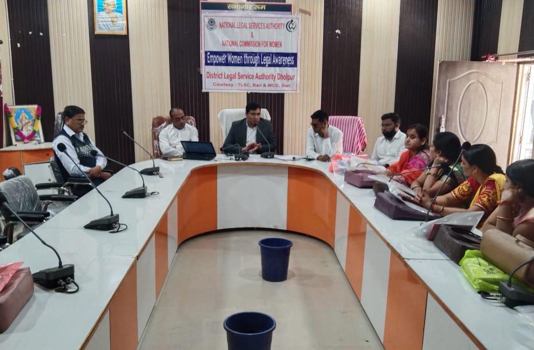 धौलपुर जिले के बाड़ी उपखंड में अंतरराष्ट्रीय महिला सप्ताह के दौरान विधिक जागरूकता कार्यक्रम का आयोजन पंचायत समिति बाड़ी के सभागार में एक दिवसीय कार्यशाला का आयोजन किया गया। इस कार्यशाला में विधिक सेवा समिति (अपर जिला एवं सेशन न्यायाधीश ) बाड़ी अध्यक्ष नीरज कुमार ने बताया कि आज महिलाएं किसी भी कार्य में पीछे नहीं है। उन्होंने महिलाओं को जानकारी देते हुए बताया ग्रामीण और कस्बाई क्षेत्रो मे आज भी महिलाएं जागरूक न है। सिर्फ घर के कामकाज, व खेती के काम के सिवाय आज भी ग्रामीण क्षेत्रों में महिलाएं अपने अधिकारों के प्रति जागरूक नहीं हैं। ऐसे मे कोई बार बैक ,अस्पताल और अन्य सार्वजनिक स्थानों पर अपने काम के लिए उनको भटकते हुए देखा जा सकता हैं । और कई बार नासमझी के कारण महिलाए लूट, जेबकट और आनलाईन जैसे क्राइम का शिकार बन जाते हैं ।ऐसे मे महिलाओं को अपने अधिकारों एवं कानूनों के प्रति जागरूक रहना चाहिए, तभी वे सही समय पर अपने अधिकारों का सदुपयोग कर सकती हैं। समाज में अनेकों ऐसी प्रथाएँ रही हैं जिनमें महिलाओं को निकृष्टतम समझा गया है। इसके निवारण लिए अनेकों कानून बनाये गए है। जिनमें महिलाओं की सुरक्षा के लिए भारतीय दंड संहिता एक महत्वपूर्ण भूमिका निभाता है। इसके अलावा उन्होंने महिलाओं से जुडे कानूनी विधिक प्रावधानों, घरेलू हिंसा, बालिकाओं के लिए शिक्षा की आवश्यकता, महिला सशक्तिकरण, समानता के अधिकार, पीडित प्रतिकर स्कीम इत्यादि के संबंध में जानकारी दी।इस दौरान मौजूद न्यायिक अधिकारियों ने महिला सुरक्षा से जुडे कानूनो की सभी को जानकारी दी।। इस मौके पर रणवीर सिंह अपर मुख्य न्यायिक मजिस्ट्रेट, अजय शर्मा अपर न्यायिक मजिस्ट्रेट, ललित मीणा न्यायिक मजिस्ट्रेट, अर्पित श्रीवास्तव सीडीपीओ बाडी, राम कुमार मीणा सामाजिक कार्यकर्ता, जगदीश जादौन, सहायिका, आगनवाड़ी कार्यकर्ता , आदि मौजूद रही ।